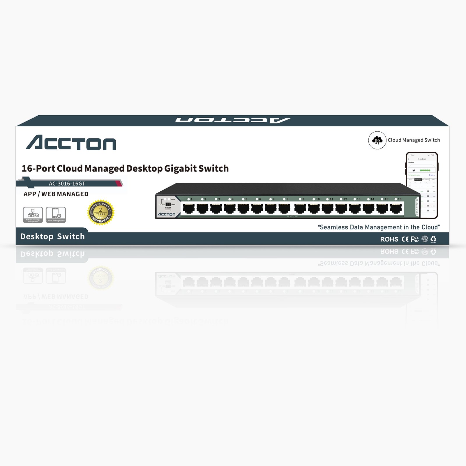 This product is a fully gigabit cloud-managed switch independently developed by our company. It provides 16 10/100/1000M adaptive RJ45 ports, supports remote mobile phone access for monitoring the operating status of the switch and management of various networkfunctions. It can be remotely managed by the WeChat mini-program”Cloud Network Management”, and the switch ports can be remotely viewed and managed. It also supportslogin management through the web page